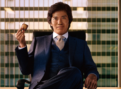 「あふれ出す情熱と、それを包み込む理性だ」と、極上比率の神髄を部下に熱く語りかける上司役の佐藤浩市。実は、本人自身「隠れ甘党」なのだとか。「極上比率」を頰張り、「大きな生チョコをブッセではさんでいるのがこれまでにないぜいたくな食感ですね。率直にとてもおいしい!忙しく働く皆さんにピッタリのスイーツだと思いますよ」と、目尻を下げながら話してくれた。