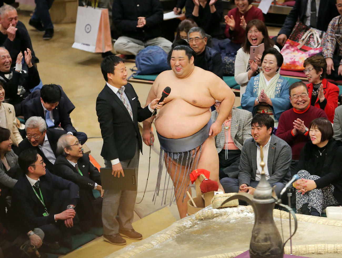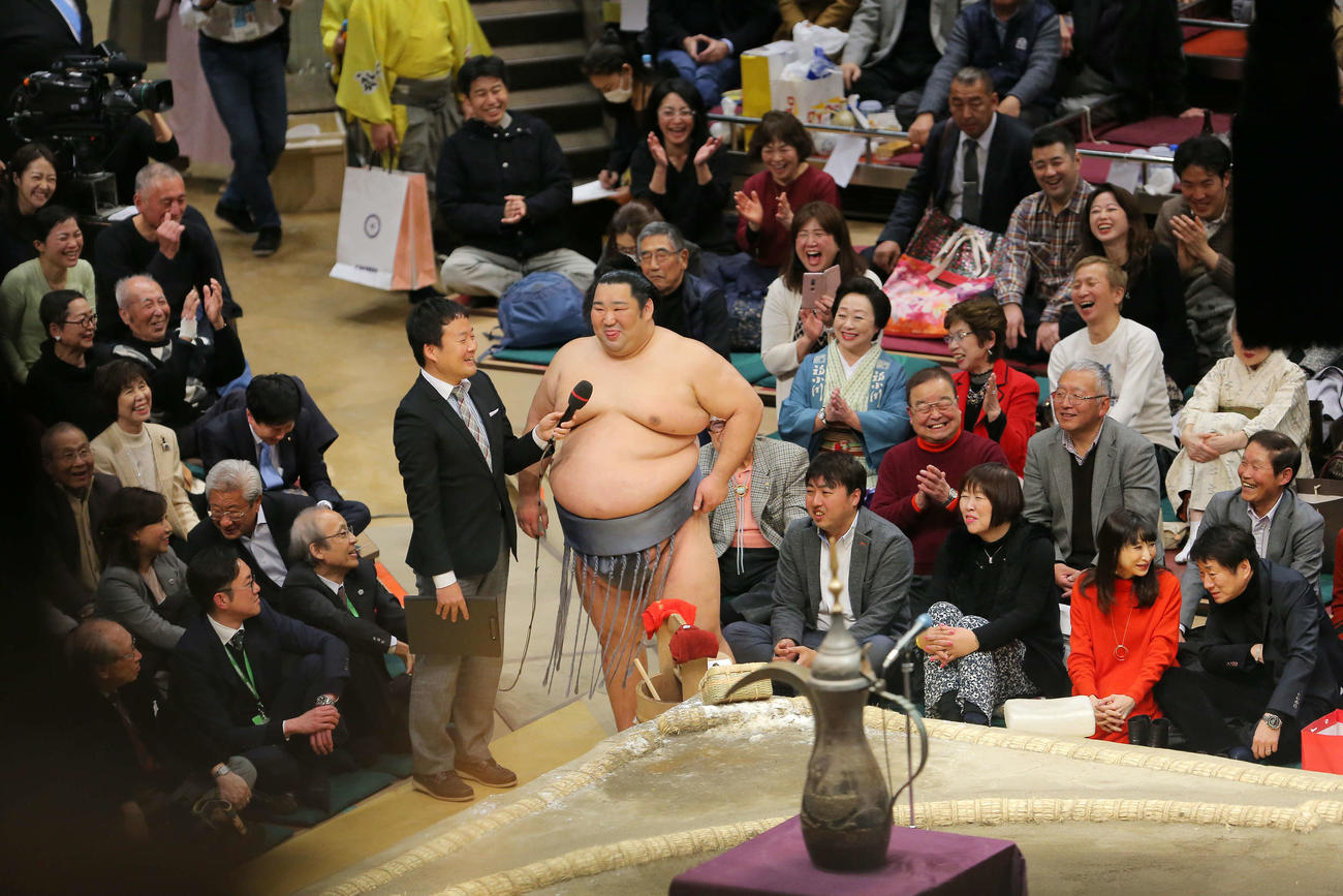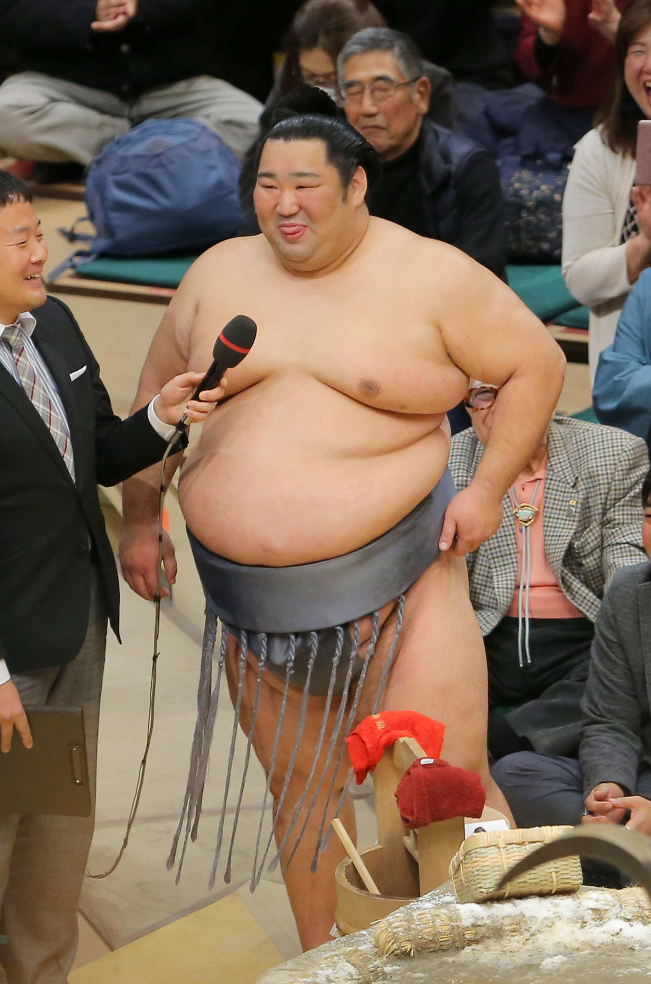 徳勝龍バリバリ、インタビューの練習をしていました。(場内歓声、笑い)