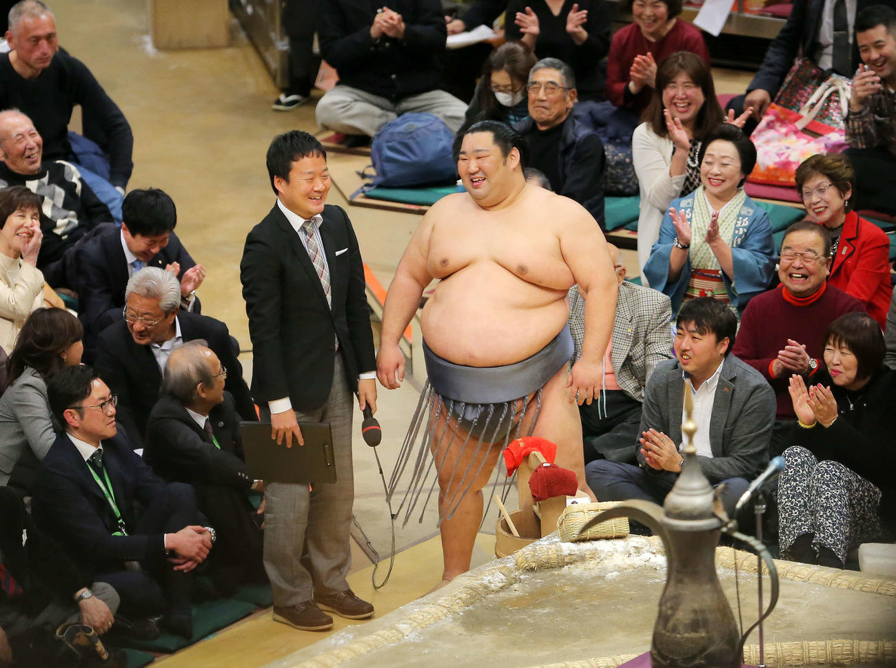 小林アナもう皆さんですね、結びの一番の大関戦、あの相撲内容を見れば、納得の優勝だと思います(場内大拍手)