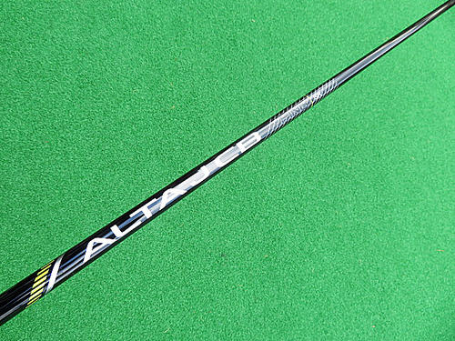 メーカー推奨シャフトが「ALTA J CB BLACK」SRフレックスだったので、まずはこちらで試打してみました。持ってみた感覚ですが、重量的にはやや軽め。でもグリップはいい感じの太さでした。シャフトを手でしならせてみると、「んっ!?」って思うくらいの柔らかさで、しなりポイントは真ん中よりも先辺り。ワッグルしてみると、右手グリップ辺りに柔らかさを感じて、結構ヘッドの動きは大きめ。正直、「持ち球が出ちゃうかな…」と心配にするくらいのユルユルさでした。素振りしてみるとやはり、インパクトにかけてヘッドが走るような印象でした。