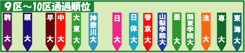 ![]() ![]() 駒大2年ぶりV!山梨学院大までシード <復路ゴール(東京・大手町)> 駒大が、2年ぶり2度目の総合優勝を飾った。5時間29分10秒の新記録で復路優勝。アンカー河村が快走を見せ、序盤は区間記録を大きく上回るペースで走った。終盤はスピードが落ちたが、大きなリードを保ったまま、右手で2度、両手で2度ガッツポーズを作り、笑顔で復路のゴールを駆け抜けた。激しく順位が入れ替わった往路とは対照的に、復路は駒大が6区の6キロすぎにトップに立ったまま、1度もその座を譲ることなくゴールした。 2位は順大、3位には桜井が1時間10分18秒の区間新記録を出した早大が入った。往路優勝の神奈川大は6位に終わった。 シード権(9位以内)の争いは亜大、帝京大、山梨学院大、日大、日体大の争いになった。日体大が最初に脱落。日大が後続の3校に抜かれてシード権外へ。残り3校は最後まで一団となって争い、亜大7位、帝京大8位、山梨学院大9位でシード権を獲得した。山梨学院大は3年連続の9位となった。 復路のゴール順位は、駒大、順大、早大、中大、大東大、神奈川大、亜大、帝京大、山梨学院大、日大、日体大、法大、関東学院大、東海大、専大。法大は、2区で棄権のため参考記録。 ![]() 駒大独走!日体大、亜大がシード争い <第4中継所(鶴見)> 駒大が高橋主将の区間賞の快走でリードを広げた。昨年も同じ9区で区間賞を獲得していた高橋は、区間新の記録と同じペースで走ったが、終盤にスピードが落ち、31秒差で区間新記録の更新は逃した。しかし、2位順大との差は3分38秒に広がった。 復路繰り上げスタートだった日体大が追い上げ、シード権争いに食い込んだ。中継所を8位で通過し、総合で9位に浮上。総合10位の亜大、11位の山梨学院大との争いになっている。 また、この中継所で専大、東海大がトップ通過から20分以内で到着できず、無念の繰り上げスタートになった。 中継所の通過順位は、駒大、順大、早大、中大、大東大、神奈川大、日大、日体大、帝京大、亜大、山梨学院大、法大、関東学院大、専大、東海大。法大は、2区で棄権のため参考記録。 ![]() 駒大逃げる!順大追い上げ2位浮上 <第3中継所(戸塚)> 駒大の1年生・塩川が力走し、首位をキープした。1時間4分58秒は区間賞にわずか4秒遅れただけ。いい流れを9区の高橋主将につないだ。 2位には中川の快走が光った順大が浮上した。4位でタスキを受けたが、6キロ付近で前を走っていた早大と大東大をとらえ、11キロすぎには食らいついていた早大・植竹を振り切った。結局、1時間4分54秒で区間賞を獲得した。 中継所の通過順位は、駒大、順大、早大、大東大、中大、神奈川大、日体大、日大、帝京大、亜大、山梨学院大、関東学院大、専大、法大、東海大。法大は、2区で棄権のため参考記録。 ![]() 早大、大東大し烈な2位争い!首位は駒大 <第2中継所(平塚)> 駒大は揖斐の快走でリードを広げ、首位を守った。2位争いはし烈で、順大、大東大、早大の3校が争った。最初に順大が脱落。大東大・柴田と早大・空山は抜きつ抜かれつ終盤まで争ったが、残り3キロで柴田がスパートして振り切った。粘った1年生の空山は、1時間3分33秒で走り、揖斐と柴田を抑えて区間賞を獲得した。 中継所の通過順位は、駒大、大東大、早大、順大、神奈川大、中大、亜大、帝京大、日大、日体大、山梨学院大、専大、関東学院大、東海大、法大。法大は、2区で棄権のため参考記録。 ![]() 駒大首位浮上!大東大・金子4年連続区間賞 <第1中継所(小田原)> 総合優勝本命の駒大が、復路最初の6区でトップに立った。往路優勝の神奈川大から23秒遅れでスタートした吉田が、6.2キロでトップに立つと、快調な走りを続けて独走状態を作る。結局、59分21秒と1時間を切る記録で、2位に1分50秒差をつけて7区の揖斐にタスキをつないだ。 大東大は、金子が59分4秒と期待通りの快走を見せ、3位に浮上した。金子は史上初の4年連続6区で1時間を切る区間賞を獲得した。 神奈川大は伸びず、5位まで後退した。 中継所の通過順位は、駒大、順大、大東大、早大、神奈川大、中大、亜大、山梨学院大、帝京大、日大、専大、関東学院大、日体大、東海大、法大。法大は、2区で棄権のため参考記録。 |