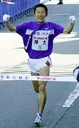 <第78回箱根駅伝:往路>◇2日◇東京・大手町〜箱根・芦ノ湖、5区間107・2キロ◇出場15校 未完のエース吉村尚悟(なおさと、2年)が、神奈川大を4年ぶり3度目の往路優勝に導いた。トップと1分13秒差の3位でタスキを受けた山登りの最終5区。区間2位の好走で駒大と早大をぶっちぎり、逆転でゴールに飛び込んだ。技術も戦術も知らない野性児が、箱根の山で輝いた。優勝候補の駒大が23秒遅れの2位。総合連覇を狙う順大が3位。学生トラック界のエース、法大・徳本一善(4年)が2区の7・3キロ地点で棄権するアクシデントがあった。復路は今日3日、5区間109・2キロで行われる。 宿舎で震えていた脚は、止まっていた。トップの駒大から1分13秒。吉村が青いタスキをむしり取る。箱根の山に飛び出した。意気込みとは逆に2、3キロ過ぎるとわき腹が痛み出した。ペースを抑えて、走るしかない。これが後に功を奏したのも、吉村の体が発した野性の勘なのか−。 前との差をじわじわ詰め、15キロ手前で2位早大・五十嵐をかわした。16キロすぎには、駒大・田中をちぎった。中継点ごとに首位が変わる戦国駅伝。天下の険は、最後に自然児を歓迎した。「最初は横っ腹が痛くなったけど、それが幸いしてうまいこと体力が蓄えられました」と振り返った。 大後栄治監督(37)は「(吉村は)未知数だったけど、前に人がいれば追いかける彼の野性味にかけました」と評価する。5区起用が決まったのは、クリスマスが過ぎてから。正攻法では勝てない。「花の2区」候補だったエースに、山を登らせた。吉村頼みのオーダーがピタリ当たった。 前を追う。都庁の3・4倍=834メートルのこう配を前にしても、吉村はシンプルに走った。コースはよく知らない。設定タイムもない。本能の走り。技術指導を受けたこともない。駆け引きも知らない。だが、大後監督は「10年に1人会えるかどうか分からないくらいの選手。彼を育てられなかったら、指導者として失格」と言い切る。 強いメンタルと筋力が魅力の、未完の大器だ。1年時の全日本大学駅伝では、スタート2分前に靴下をはくなど、関係者をハラハラさせた。将来への伸びしろが、存分にある。神奈川大が箱根を連覇した97〜98年の記憶は「ほとんどない」。中学3年の時、教室に張り出した目標には「神奈川大で箱根を走って優勝したい」。根拠なく書き、夢を実現させた運もある。 前回優勝時、神奈川大は「金太郎アメ」と呼ばれた。エースはいないが、どの選手もそこそこ走る。勝てなくなって丸3年。ついに柱ができて、再び頂点に立った。「総合優勝なんて考えてもいない。うちのチームが完成するのは、来年なり再来年」と大後監督。2年後、吉村はユニバーシアードのハーフマラソンで金メダルを狙う計画がある。本能の走りは、チームとともに進化する。【佐々木一郎】 |
