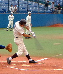 | ◆戦評 初回、早大は四番・比嘉の二点本塁打で先制。2回にも押し出し四球で1点を追加する。三回裏、先発・越智大が東大に連打を許し2失点も、その後は立ち直り、自己最長イニングとなる7回を投げ、12奪三振。打線も、鳥谷の本塁打などで着実に9得点。8回からは和田毅が登板。3三振を奪い、一回戦に続いて大差で試合を決めた。 |